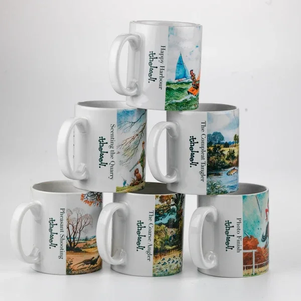 Thelwell's sturdy Cambridge style ceramic mugs hold 10 fluid ounces (295ml) and are suitable for use in the home, around the yard, in the lorry and on picnics. Dishwasher and microwave safe. Gloss exterior finish. Dimensions are 8cm diameter by 9cm high. Printed in Warwickshire, UK. For easy and safe transport, Thelwell mugs come packaged in a sustainable cardboard mug box with a decorative card outer.