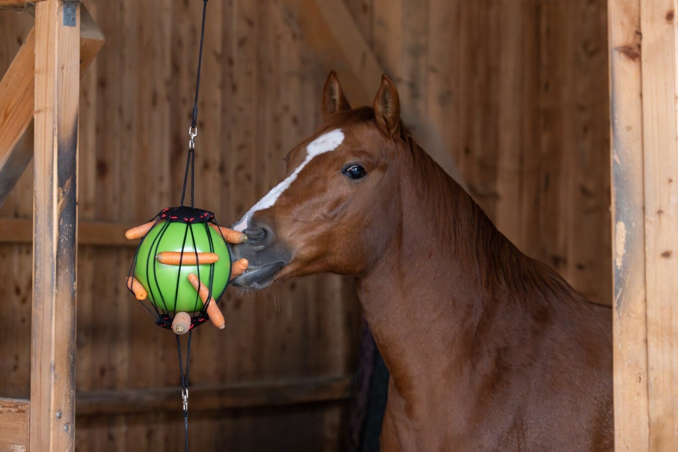 This Kerbl Therapy Play Ball for Horses provides optimal variety in the horse stable. It guarantees a particularly easy installation indoors or outdoors in the horse stable and is made of a robust, resistant and bite-proof material. The possibility to embroider the play ball with different treats makes this an absolute all-rounder among the play balls. This play ball delivers what it promises and guarantees less boredom in everyday life through intensive occupation.
