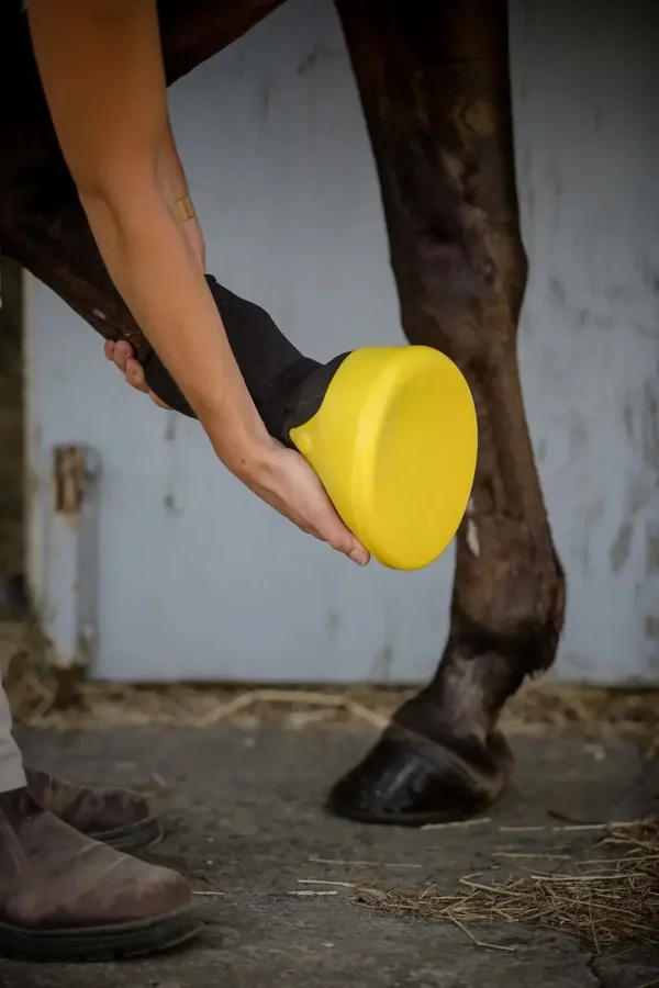 Tubbease™ was developed in New Zealand with the aim to create a breathable treatment shoe for problem horse hooves (e.g. sole ulcers). The supplied hook and loop tapes mean Tubbease™ is easy to attach to the horse’s leg.